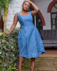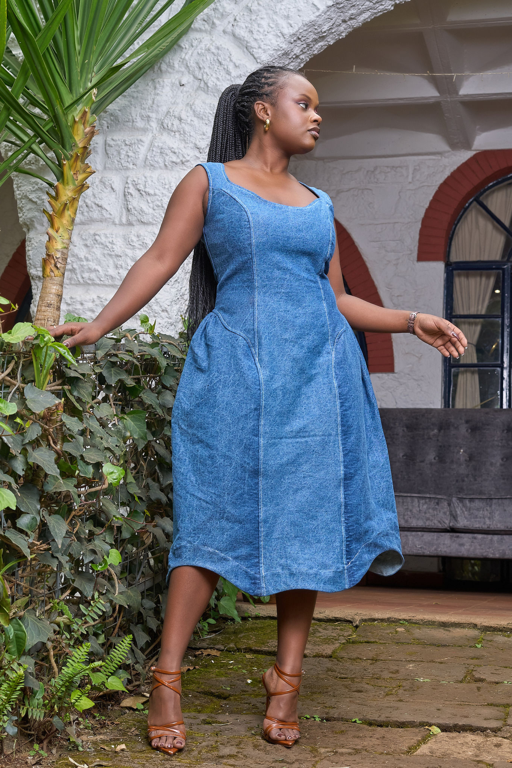 The Mawimbi Midi is a mix of Classic silhouette with modern touches. Featuring Curved seams on the neck, hem and hip seam the dress is a new take on what denim can offer.