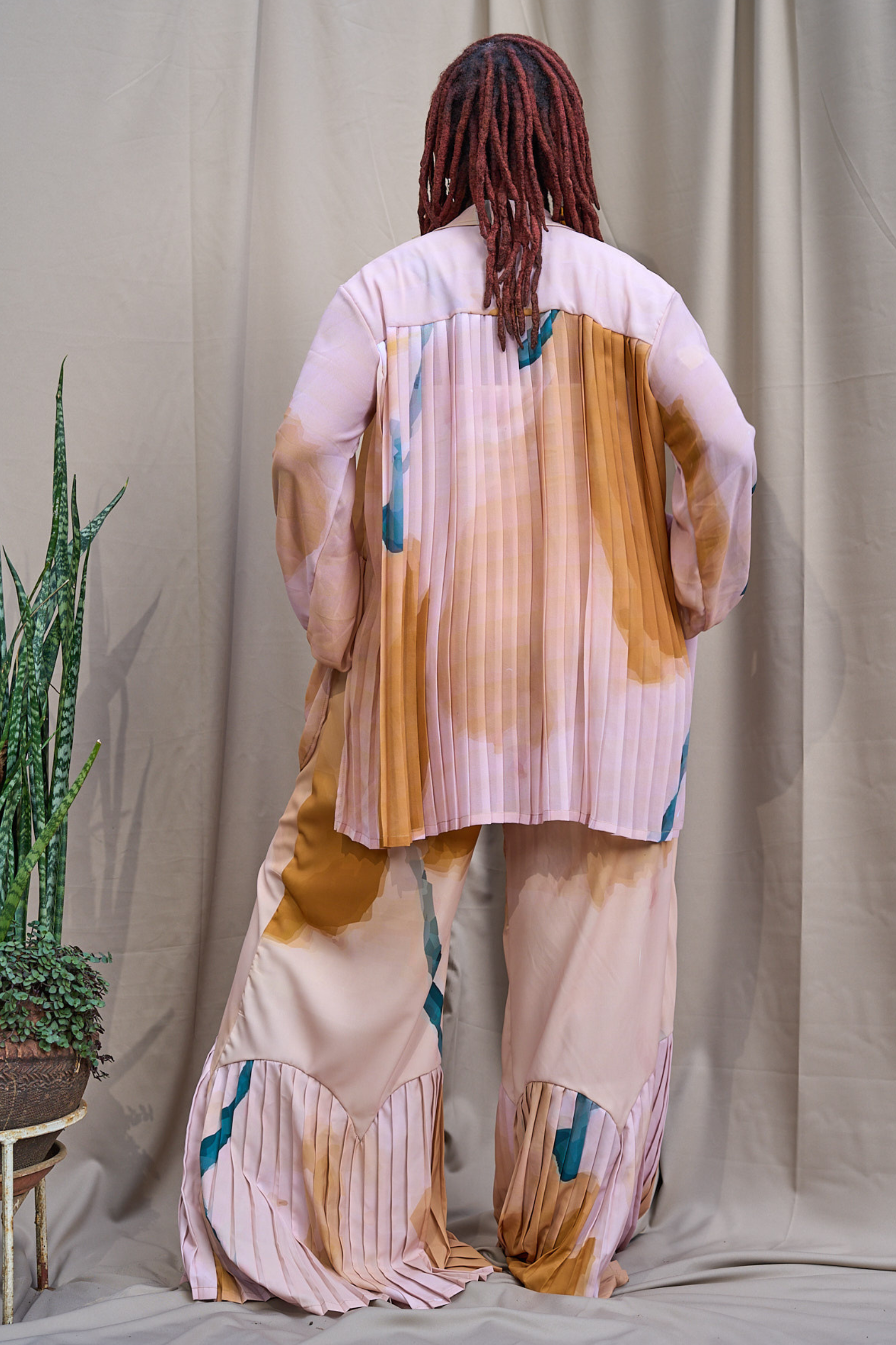 The Tolek pant, now a classic Itikadi staple, are made for comfort, featuring a elasticated waistband at the back. The pants feature our pleated arc detail which give the pants ins unique look and feel and the print element adds to the special factor
